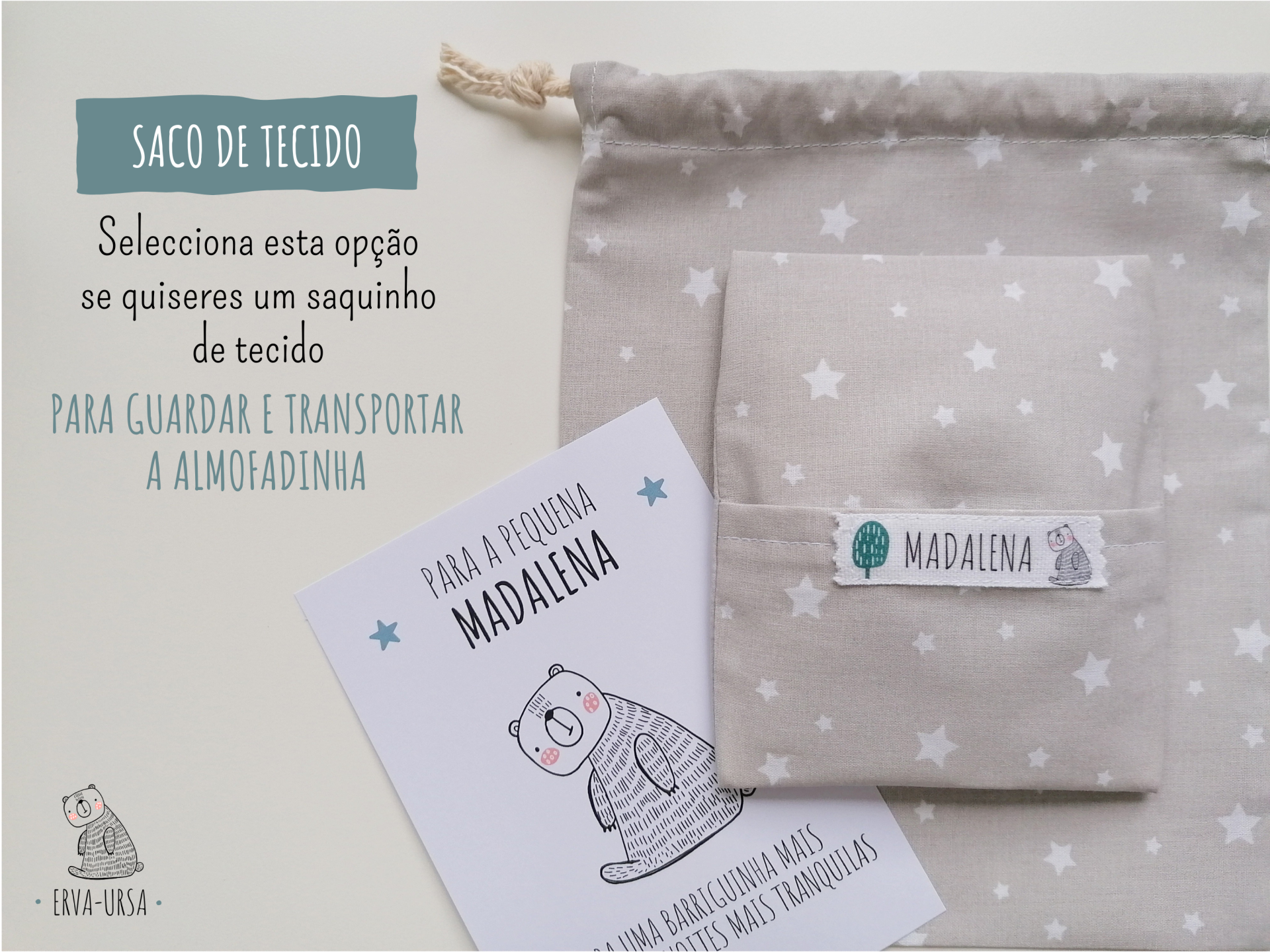 O saco de tecido (opcional) serve essencialmente para guardar e transportar a almofadinha térmica entre utilizações.