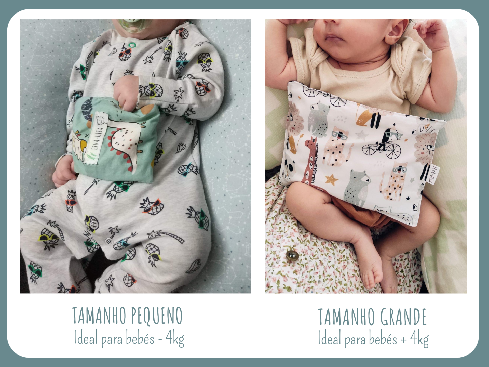 Pack (dois tamanhos): Este pack foi criado para acompanhar o bebé desde o momento do nascimento até ao primeiro ano e meio de idade. É composto por duas almofadinhas térmicas de diferentes tamanhos (grande + pequeno), para que possa escolher o tamanho que melhor se adequa ao bebé durante o seu crescimento.