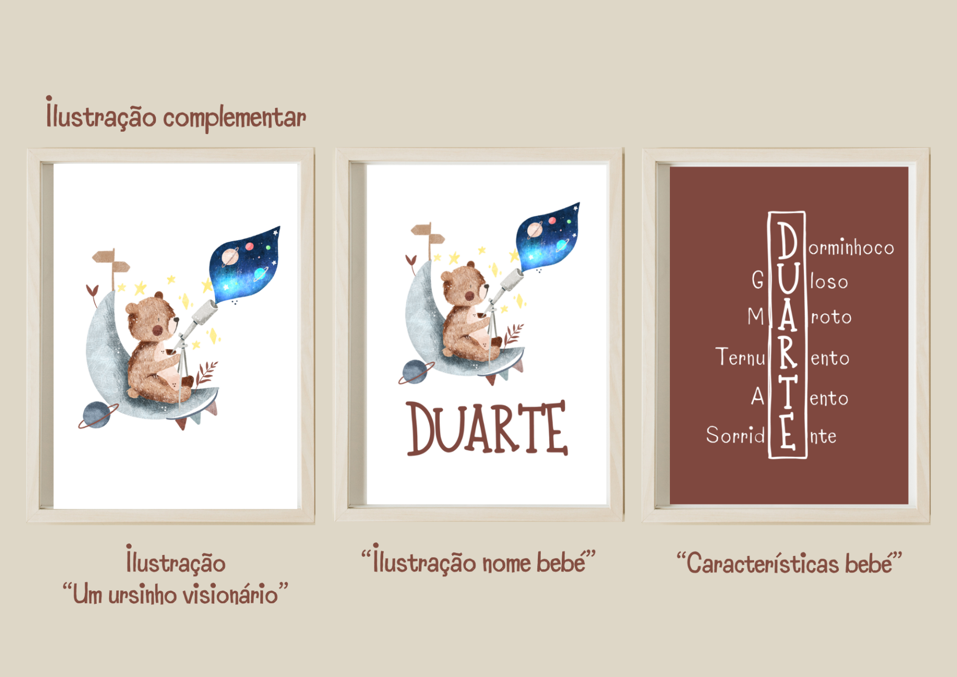 Ilustração personalizada com nome do bebé