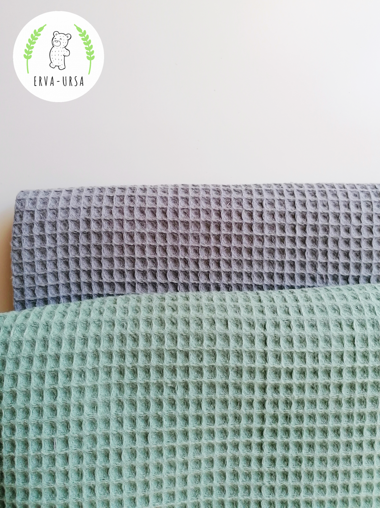Cores tecido waffle: Verde, Cinza e Rosa Velho;