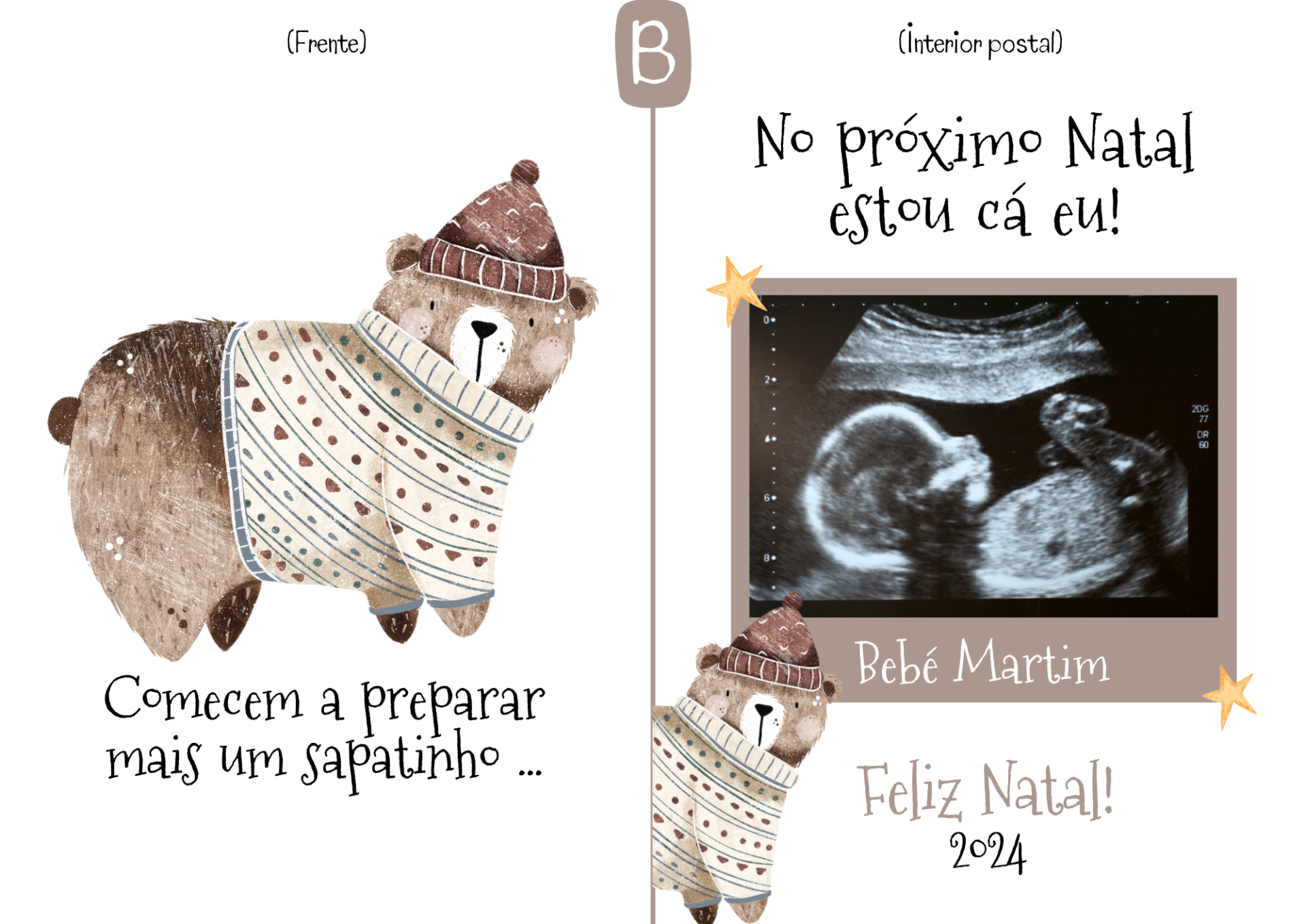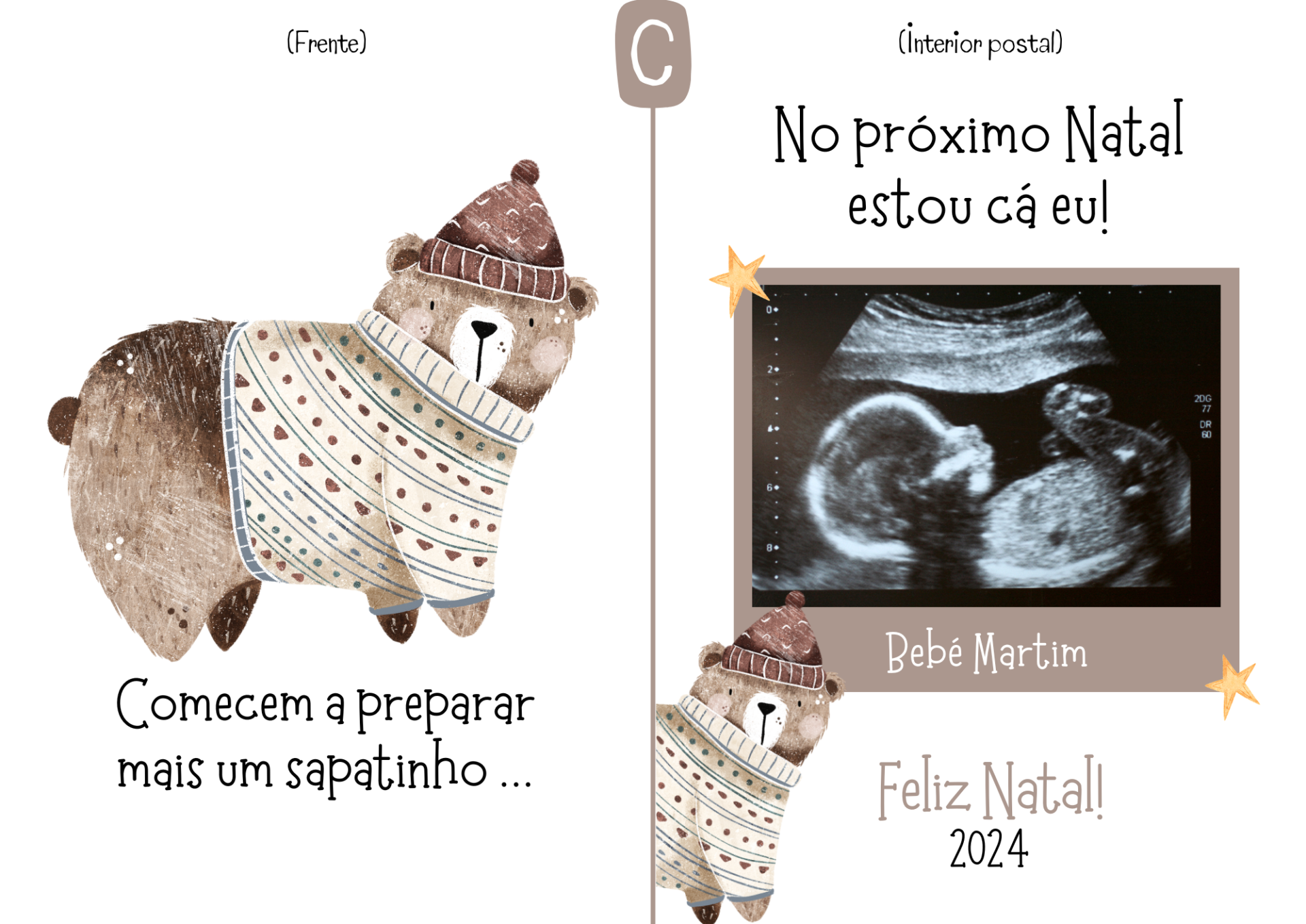 Postal: "Comecem a preparar mais um sapatinho... no próximo Natal estou cá eu!"