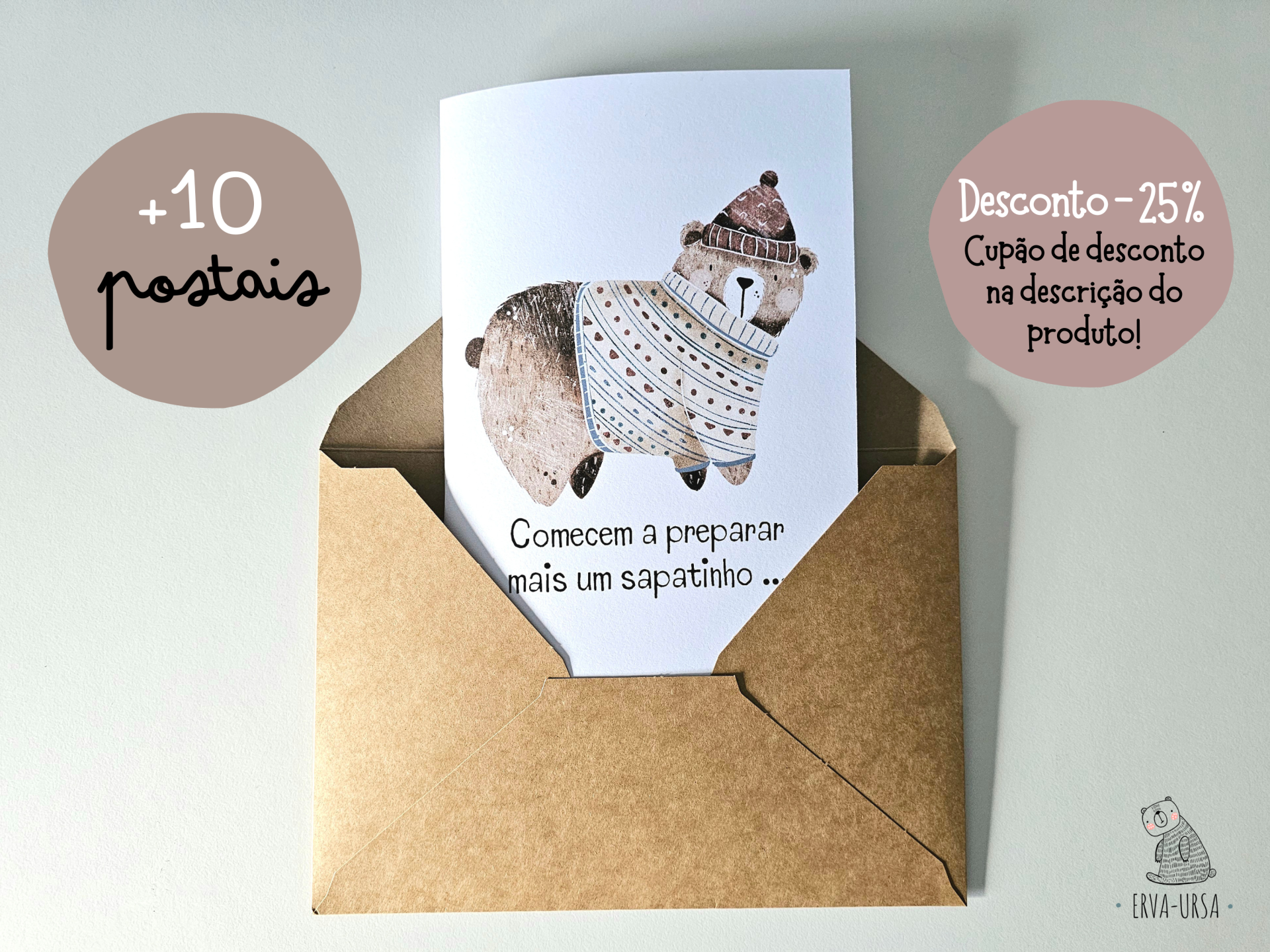 Envelope disponível (se quiseres adicionar um envelope de papel kraft a cada postal, selecciona esta opção)