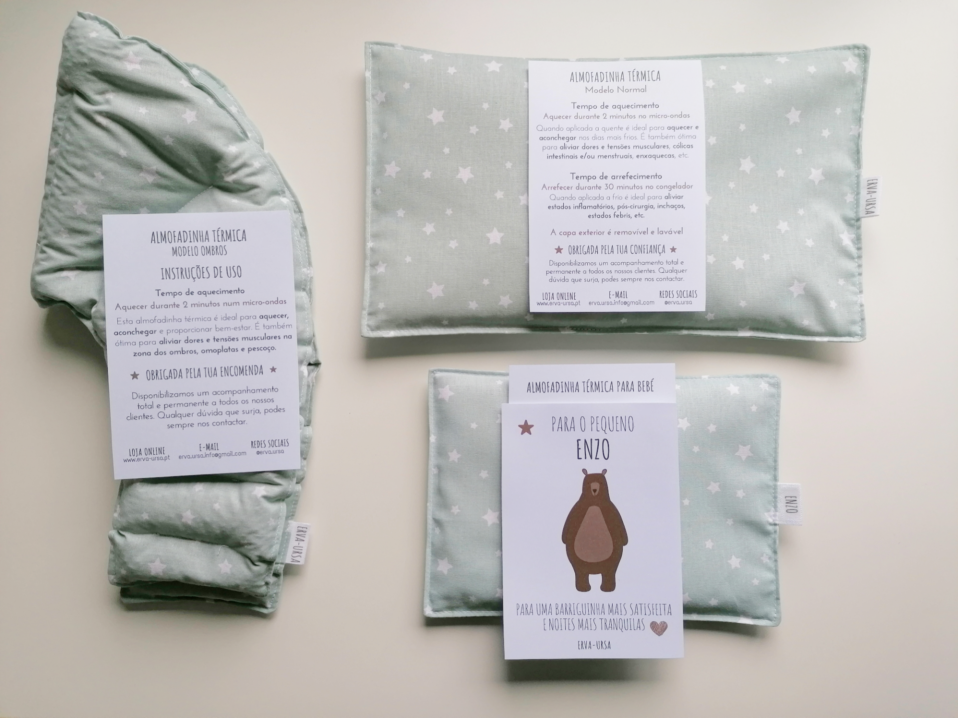 Esta almofadinha térmica é confeccionada especialmente para recém-nascidos e bebés até 1 ano e meio de idade;