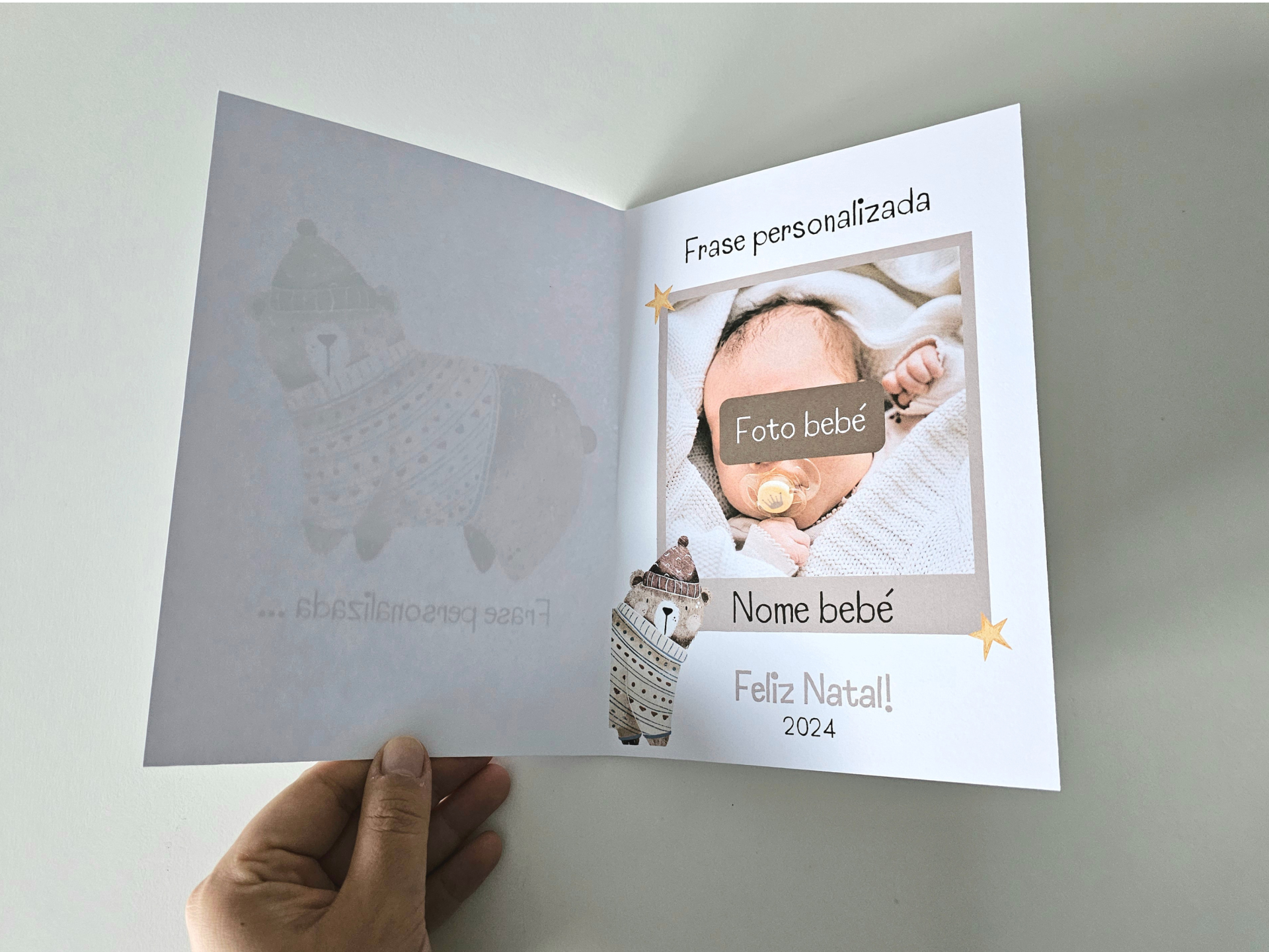 Modelos com foto (importante!): A fotografia do bebé deve ter um formato quadrado e a melhor qualidade possível. Deverá ser enviada para o nosso e-mail erva.ursa.info@gmail.com após a realização da encomenda.