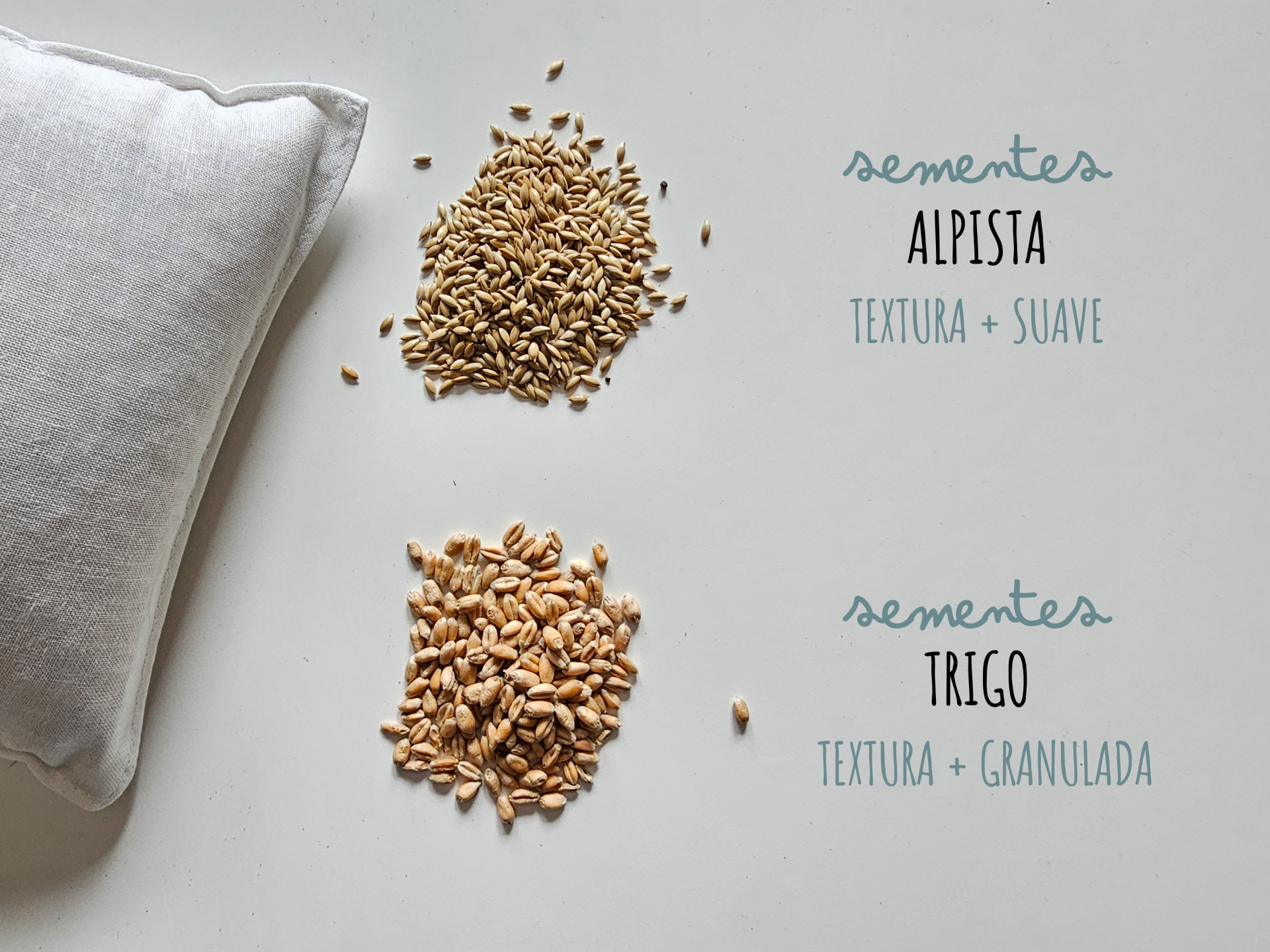 Se pretendes um conteúdo suave e leve (ideal para bebés e crianças) recomendamos um tipo de semente mais pequeno e/ou fino como as sementes de Alpista.